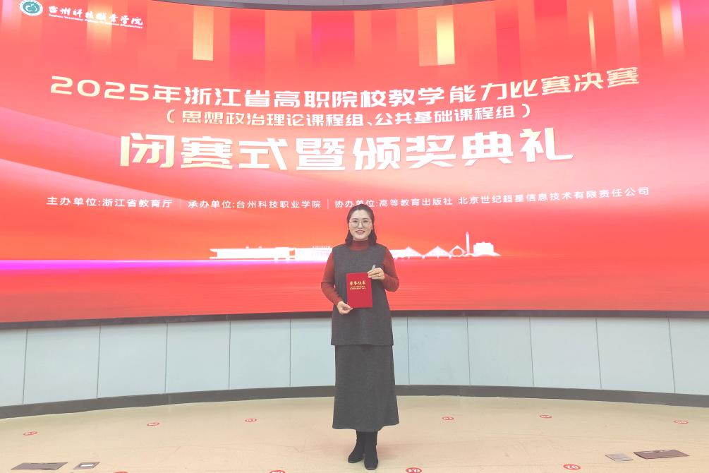 11月23日,2025年浙江省高职院校教学能力比赛决赛分别在杭州职业技术大学和台州科技职业学院落下帷幕。我校参赛团队获一等奖1项、二等奖1项、三等奖5项。其中,阳明学院赵薇老师的参赛课程“习近平新时代中国特色社会主义思想概论”荣获思想政治理论课程一组一等奖。这是我校教师连续五年获得该赛项一等奖。