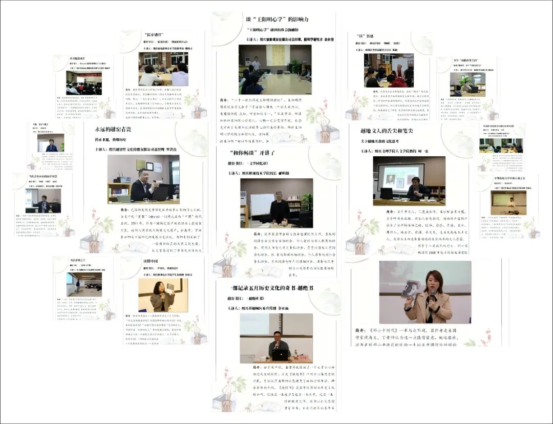 以“和畅书吧”为阵地,多个相关品牌活动逐步发展起来。“和你畅谈”活动贯穿始终,截至2026年4月底,共举办了247期。主讲席上,有潜心学术的各界学者,有分享商业智慧的企业家,还有讲述创作艰辛的本地作家,话题涉及思想政治、文学经典、数字经济、道德伦理、地方文史、全球文明等方面。活动以观点交流碰撞为主,引发了师生的共鸣。此外,同步推广的“春天读诗”“金秋诗会”等系列活动也已连续举办11届,被列入绍兴市“我们的节日”主题活动。