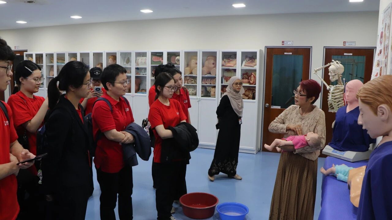 师生一行走进林肯大学学院,参观临床技能实训中心,零距离感受该校开放、包容的办学理念。中马师生同上一堂护理急救课《分秒必争:生命由你守护》,两校学生进行急救技能互动演示,马方学生严谨的操作规范、默契的团队配合,给研学团留下了深刻的印象。