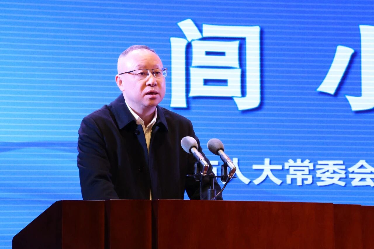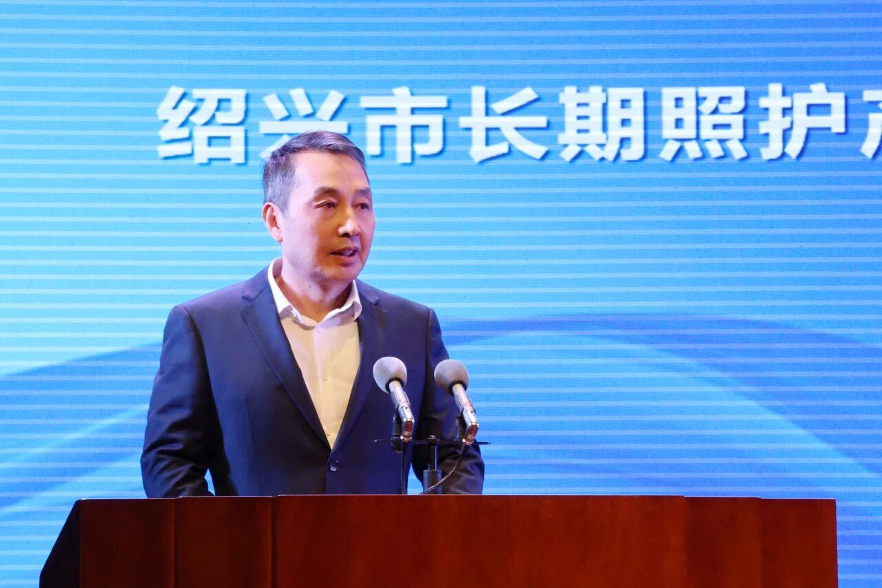 闾小锋发表讲话,他指出,应对人口老龄化,基础在于制度,核心在于服务,关键在于队伍。产业学院的成立和“政校企”合作的开展,构建了“政府主导、高校育人、企业参与”的协同模式,打破了领域璧垒,整合了各方资源,正是我们直面社会“急难愁盼”、培养专业化照护队伍的创新之举和长远之策。这是一次“一举多得”的战略合作,通过深度融合形成了“队伍培养一产业升级一社会服务”的良性闭环,让政府决策更科学、高校育人更精准、行业服务更专业;这更是一次“着眼长远”的机制探索,通过三方协同、资源共享等制度设计,确保合作行稳致远并为其他民生领域提供了经验。他希望,三方精诚合作,争做“政校企”合作的典范;聚焦成果转化,打造“绍兴模式”的样板;放大社会效益,树立“普惠共赢”的标杆。