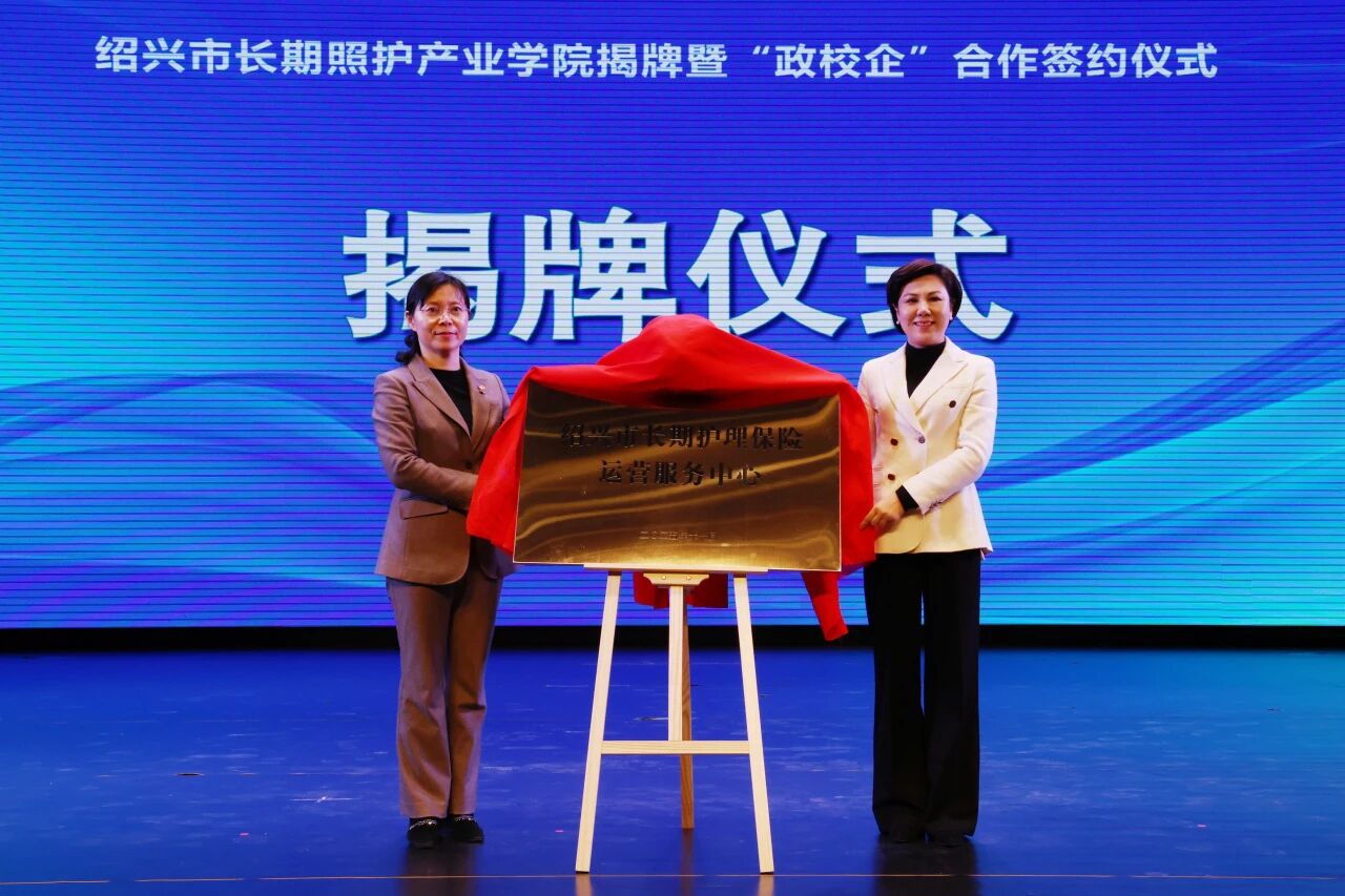 王佳、钱创为“绍兴市长期护理保险运营服务中心”揭牌。