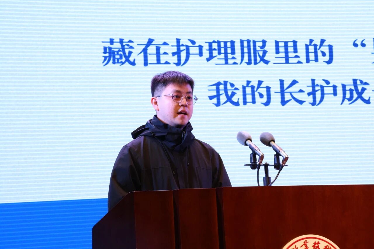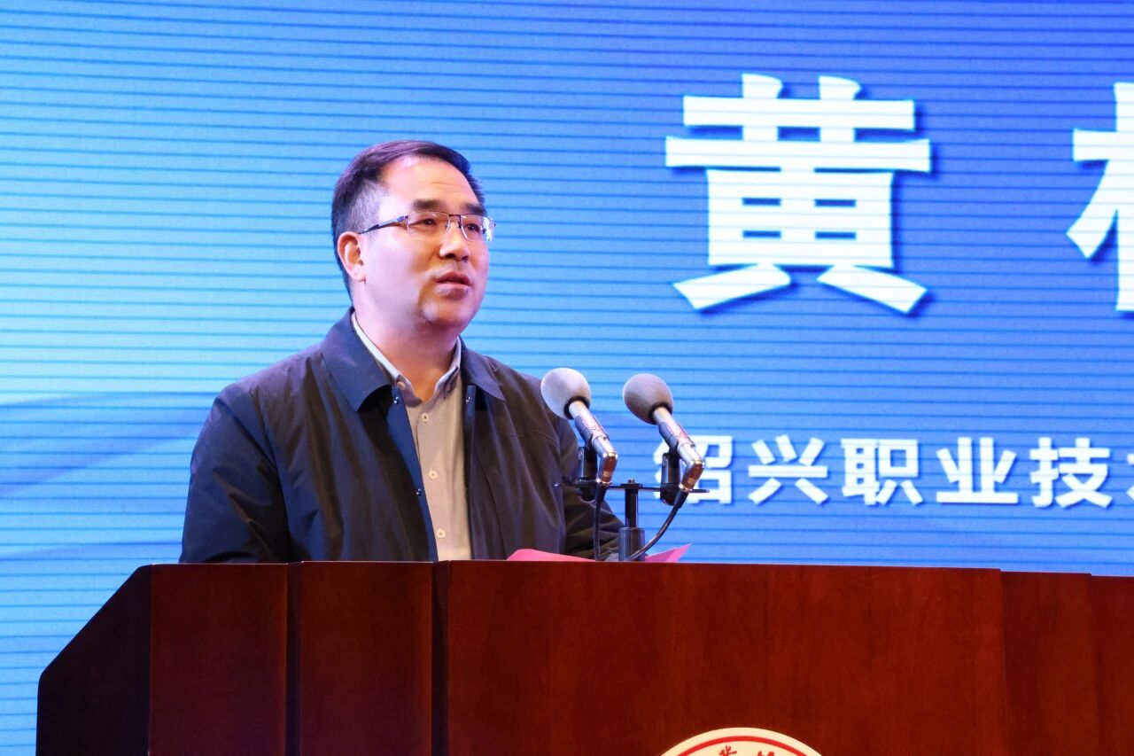 黄柏江致辞,他表示,学校始终以服务地方发展为己任,在健康医养领域已培养了大量高素质医护人才。“绍兴市长期照护产业学院”的揭牌成立,是学校响应国家战略、服务老龄事业的责任所在,也是深化产教融合的关键举措。学校将在市医保局指导下,与长护险共同体紧密合作,整合政、行、校资源,坚持“品性为根、能力为本”,协同培养大批高素质养老服务人才,为绍兴推进共同富裕示范区建设贡献更大力量。
