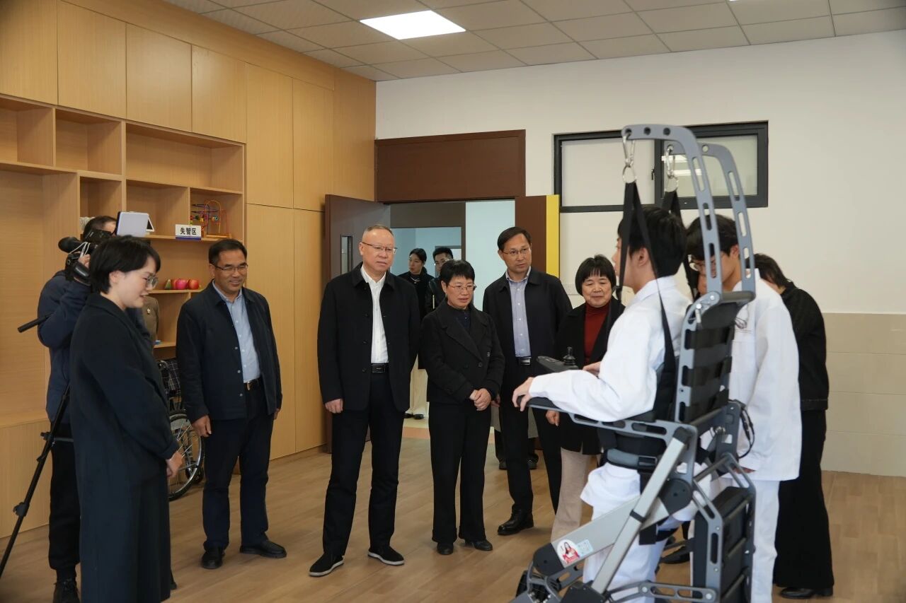 仪式开始前,闾小锋一行实地踏看了设在我校的绍兴市长期照护产业学院、智慧健康养老服务实训基地。