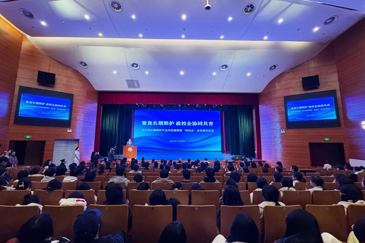 我校作为地方高职院校,在医养健康领域积极耕耘,建有智能化长期照护虚拟仿真实训中心,医学院健康医养专业群是绍兴市重点专业群,为“健康浙江”建设提供高品质的人才供给。此次活动的举办,标志着绍兴市长期照护领域“政校企”协同发展模式正式落地。我校将以产业学院为载体,持续深化产教融合、校企合作,不断优化人才培养方案,提升社会服务能力,与各方携手打造长期照护“产学研用”一体化生态,为绍兴市长护险高质量发展和养老服务体系建设注入专业人才队伍。