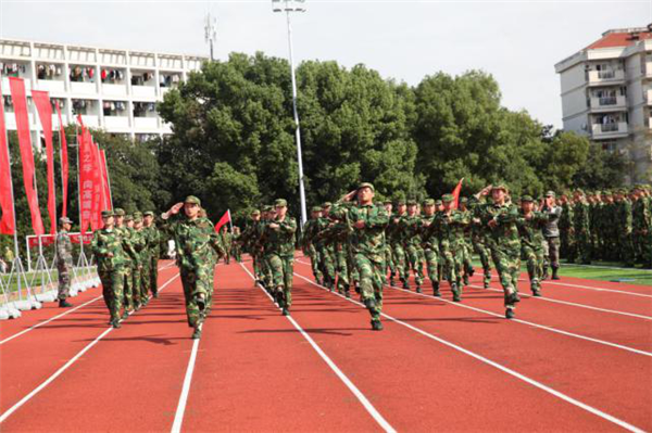 在激昂的《分列式进行曲》中,65支军训方队和大学生教官队,迈着整齐的步伐,喊着嘹亮的口号,雄赳赳、气昂昂通过观礼台接受检阅,展示了2018级新生军训成果和绍职院莘莘学子蓬勃向上的精神风貌。