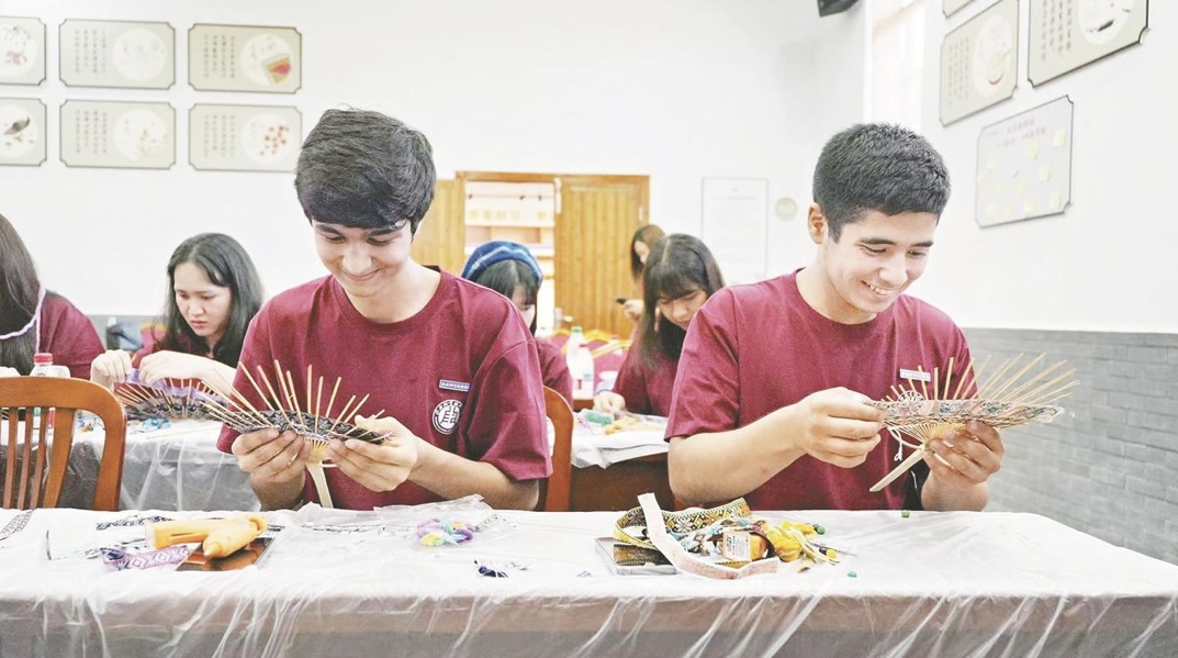 9月26日下午,柯桥区福全街道徐山村党群服务中心内人气十足,一场集农耕传习和非遗体验于一体的特色活动在此举行,来自绍兴职业技术学院的16位留学生沉浸式感受徐山村的农耕文化与粮仓记忆。据了解,16位留学生分别来自俄罗斯、蒙古、泰国、乌兹别克斯坦、塔吉克斯坦等国家,他们在此不仅认识了一件件凝结着古人智慧的传统农具,还动手学习竹编技巧,编织出一柄柄非遗蒲扇。