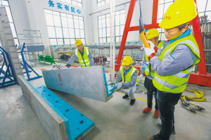 昨日,由绍兴市住房和城乡建设局主办、绍兴职业技术学院承办的2018绍兴市首届装配式建筑技能竞赛,在绍兴市装配式建筑产业工人教育培训基地举行。来自全市的60余名建筑专业选手进行了预制构件装配、铝模板拼装和钢筋套筒灌浆两个项目的竞赛,现场比拼谁的房子”搭“得更好。通过比赛,锻炼了装配式建筑专业工人队伍,提升了装配式建筑关键工种施工水平。 记者 黄 霄 摄
