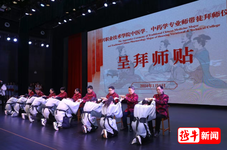 绍兴职业技术学院现场聘请了10位来自共建联盟单位的专家学者为兼职教授,还组织了绍兴职业技术学院中医学、中药学专业师带徒拜师仪式。通过呈拜师帖、行拜师礼、呈敬礼茶、赠回徒贴等传统礼仪,展现尊师重道、明礼求学的精神。