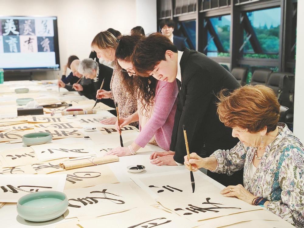 4月9日下午,来自瑞士“兰亭书法学堂”书法学习交流团的学员走进绍兴职业技术学院美育中心,和学校书法专业师生进行书法交流,感受中华传统文化的博大精深和独特魅力。
